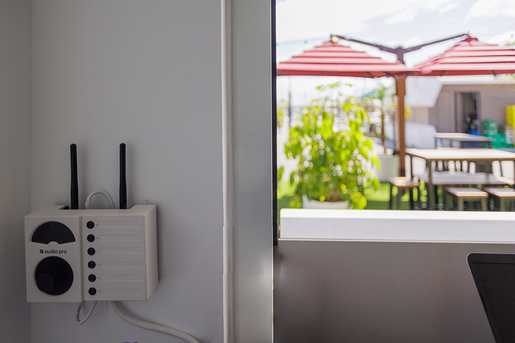 En los chiringuitos de Wilson, Darwin y Puerto Escondido se han instalado un total de 22 altavoces SP-3, asociados a tres transmisores inalámbricos TX-1, y a tres controladores inalámbricos de volumen VOL-1 de オーディオプロ事業.