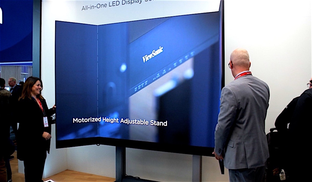 Otra de las novedades del amplio porfolio de productos expuestos en el certamen es una pantalla Led de 135 インチ “con características exclusivas de momento de ViewSonic, como su función foldable screen -explica Ronchetti y que muestra en el vídeo adjunto-. Se trata de una pantalla de gran formato que se puede cerrar y abrir, facilitando su transporte y movilidad, especialmente idónea para aplicaciones de rental”.