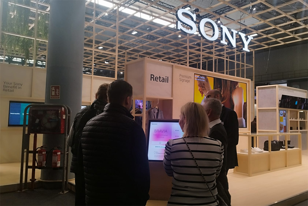 Para adentrarse en entornos realistas de retail y hostelería se muestran las pantallas Bravia Professional más emblemáticas, incluido su modelo de señalización premium BZ40L junto al BZ50L, BZ35L, BZ30L y EZ20L. Las demostraciones que se realizan tienen como objetivo dar a conocer las funciones audiovisuales inteligentes de estas soluciones y la tecnología antideslumbrante de color negro intenso que transforma cualquier espacio, incluso en entornos con una iluminación difícil.