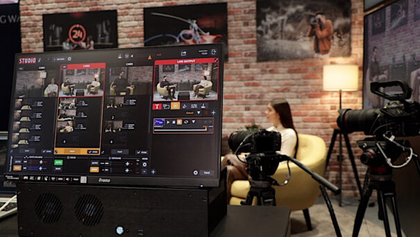 En la parte de virtual estudio, y gracias a la colaboración con Brainstorm y アルファライト, se diseñaron dos sets: uno con una pantalla Led de Alfalite y otro con un croma key. El objetivo era mostrar cómo se pueden utilizar cámaras, tanto de nivel básico como de alta gama, para escenarios de producción virtual escalables.