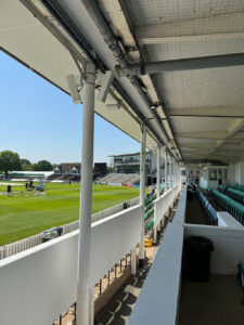 “El terreno necesitaba un nuevo sistema de megafonía que cubriera las zonas de asientos, así como los bares, comedores, 駐車場, zonas de práctica y la entrada. その上, tuvo que instalarse a un nivel elevado debido a las inundaciones del suelo, algo que ocurre casi todos los años. Proporcionaron un documento de la Junta de críquet de Inglaterra y Gales (EBC) sobre las especificaciones de rendimiento de los campos de críquet, que ofrecía orientación sobre cómo integrar el sistema de una manera que respetara el terreno”, 説明 マーク・ブロムフィールド, director de ventas de soluciones de sistemas en CUK Group.