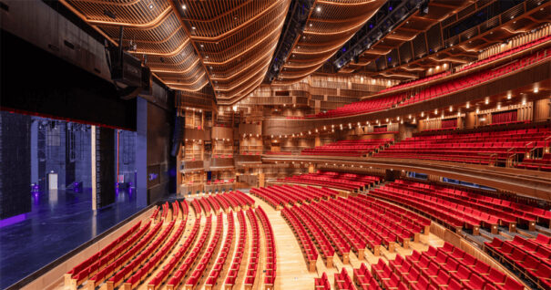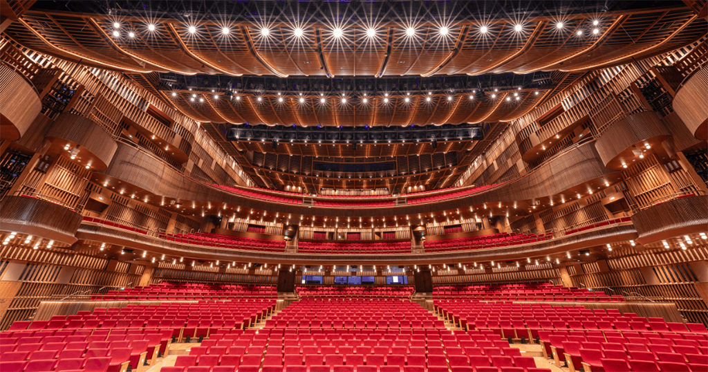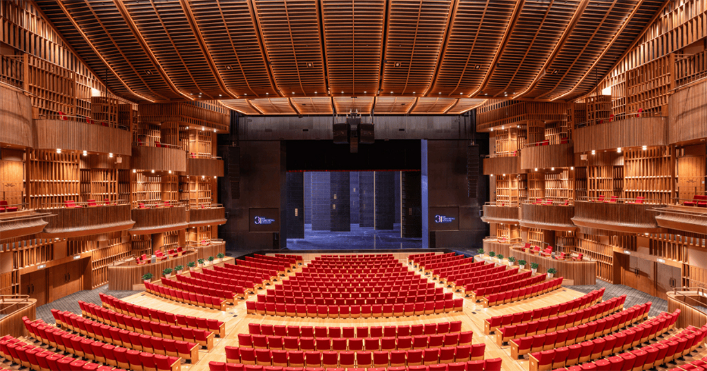 初めに, 大劇場は主にミュージカルの上演のために設計されました, 中国のオペラ, ダンスとロック/ポップのコンサート. 必要なすべての増幅と部屋の基本的な形状は、これらの用途を念頭に置いて設計されました。. しかし, その後、オーケストラ音楽を含むように焦点が拡大されました。, これは音響コンサルタントにとって課題でした.