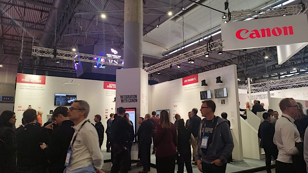 キヤノンのスタンドは次のような構造になっています。 さまざまな地域 彼と一緒に プライベートデモ, 独自のスタジオでコンテンツを作成するためのソリューションも提供します, ビデオ会議とハイブリッド学習.