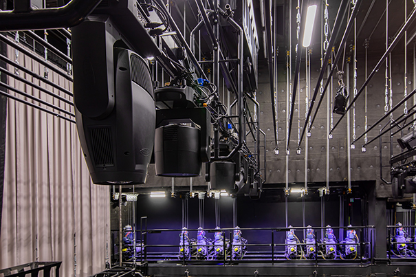 劇場の大舞台や室内ステージで, PS テアトル は、さまざまな照明器具に基づいた柔軟な照明システムを統合しています。 高揚感 Netron シリーズのノードとスプリッターを使用した信頼性の高い信号配信を使用します。 黒曜石.
