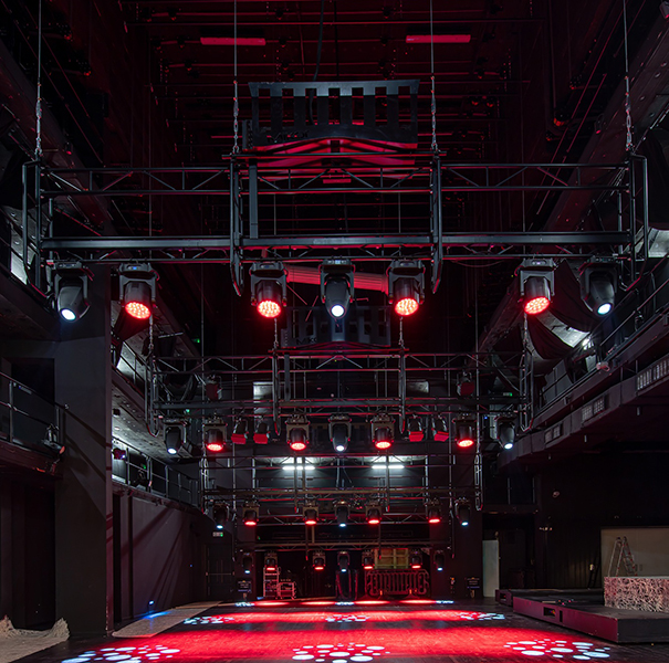 照明システムは、シリーズノードとスプリッターを使用した信頼性の高い信号分配を使用します。 ネトロン・デ・オブシディアン, 複数のパフォーマンス空間で柔軟性を提供します.