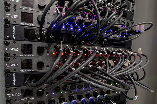 コントロールラックには以下が装備されています 6 仕切り EN12 黒曜石, 1 RDM10 y 4 DMX 10-5. 20 EN4/EP4ノード 彼らはそれを認めている ローカル DMX/ETH 変換. 配信システム, sACNに基づいて並行して プロトコルDMX, 柔軟性と拡張性に優れています.