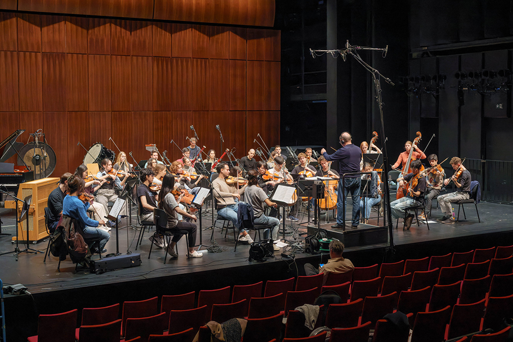 オーケストラの録音は2段階で行われました. 初め, 器楽部分はベーゼンドルファー・エンスパイア・グランドピアノで演奏されました. MIDI データとオーディオ信号の両方が記録されました. 次, オーディオトラックは、ヘッドフォンガイドとしてディレクターとアンサンブルのために再生されました, これにより、オーケストラはピアノと完璧に同期して演奏することができました。, 楽器自体からの音響干渉なし.