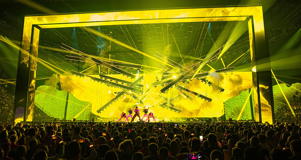 La escenografía y el diseño de producción ha sido responsabilidad de Florian Wieder, en la que se ha incluido una gran 透明な LED スクリーン 750 平方メートル そして marco de vídeo tridimensional a escala industrial en la parte delantera para que ningún asistente se perdiera detalle alguno.