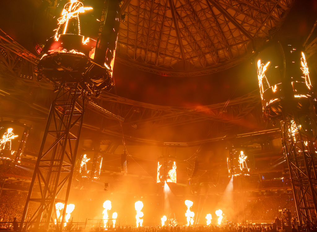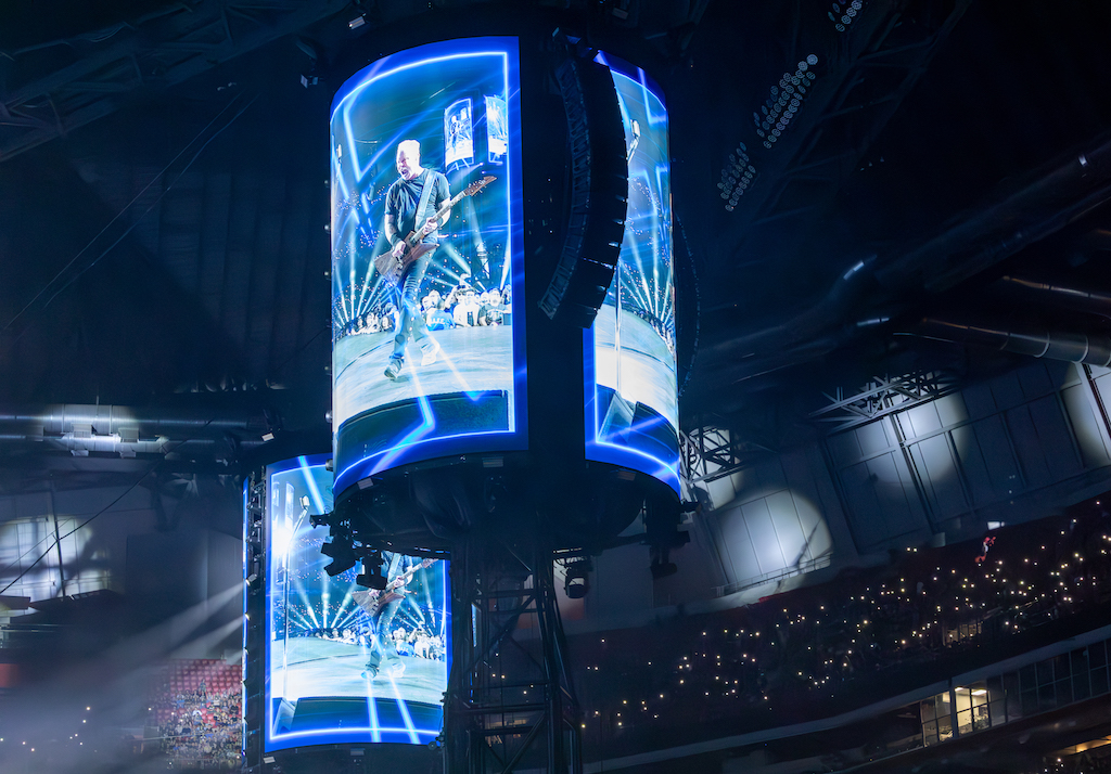 円形ステージを備えた 革新的な視覚体験 彼のフォロワーへ, の ワールドツアー M72 バンドの メタリカ その洗練された印象的な技術に誰もが無関心です。, 詐欺 8つの吊り塔 ある 30 高さメートル, それぞれが 3 つの LED スクリーンで構成されています 15件中×9 メートル, と 合計 24 面, の仕事 ダン・ブラウン, クリエイティブディレクター兼プロダクションデザイナー.