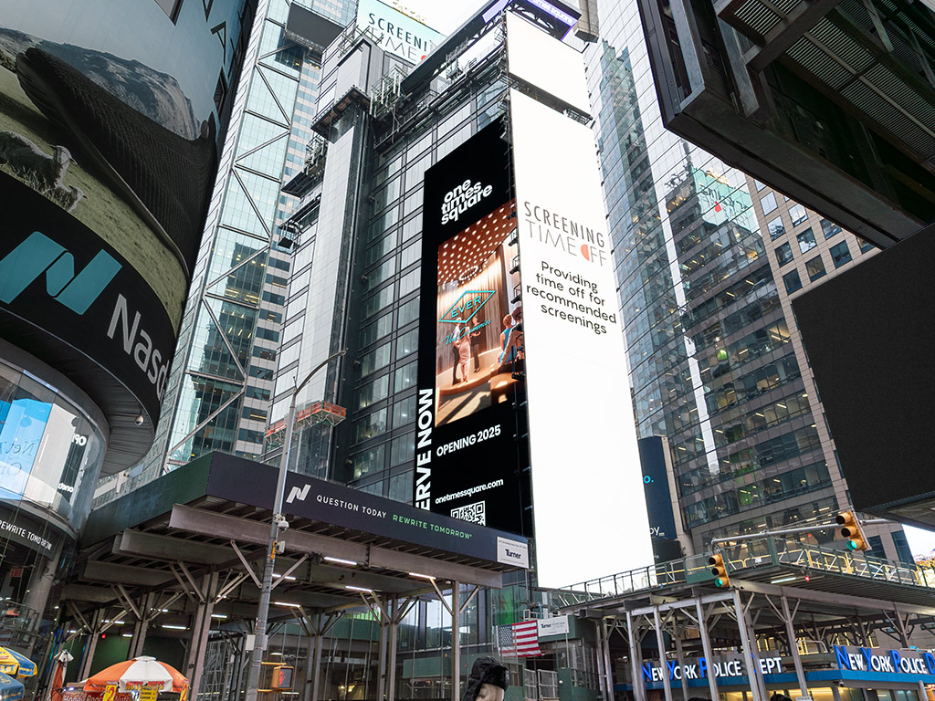 AMA Electric Sign ha sido la empresa encargada de los servicios de instalación, その間 New Tradition se encarga de gestionar la publicidad en los activos digitales fuera del hogar de One Times Square.