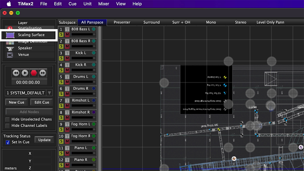 タイマックス ha ampliado las capacidades de audio de サウンドハブ con la incorporación de la función Scaling Surfaces (Superficies de Escalado). Esta herramienta permite a los usuarios reescalar un archivo de espectáculo espacial, desde un entorno de reproducción de estudio hasta un auditorio, con solo dos clics. Una solución que permite trasladar el trabajo del estudio al escenario o de un recinto a otro de diferentes tamaños.