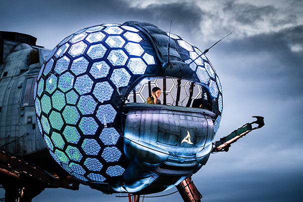 彼 festival de Glastonbury de este año presenció el regreso del colectivo de performance アルカディア スペクタキュラー y su icónico Dragonfly Stage, una instalación de 13 metros de largo creada a partir de un helicóptero militar Sea King transformado.