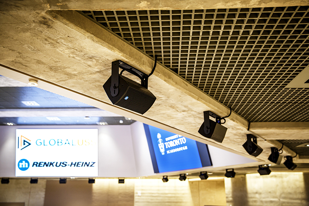 “El principal reto para nosotros fue encontrar una solución para salas ya diseñadas, con canalizaciones de cables ya instaladas”, 説明する John Busza, CTS-D, diseñador de sistemas de Global USS. “Nuestro equipo de instalación tuvo que adaptarse al espacio disponible, lo que hizo que las soluciones adaptables de Renkus-Heinz fueran la solución perfecta”.
