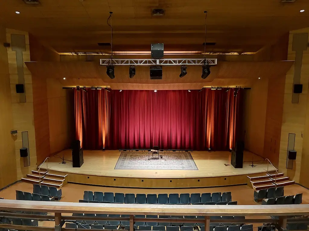 しかし, a medida que evolucionaba la programación del auditorio, también lo hacían sus exigencias de audio. El sistema de sonido heredado instalado anteriormente (altavoces de columna activos de primera generación situados únicamente a la izquierda y a la derecha de la sala) ofrecía una cobertura muy desigual, con importantes lagunas tanto en la platea como en el anfiteatro. Apenas era adecuado para conferencias y simplemente inadecuado para representaciones musicales contemporáneas.