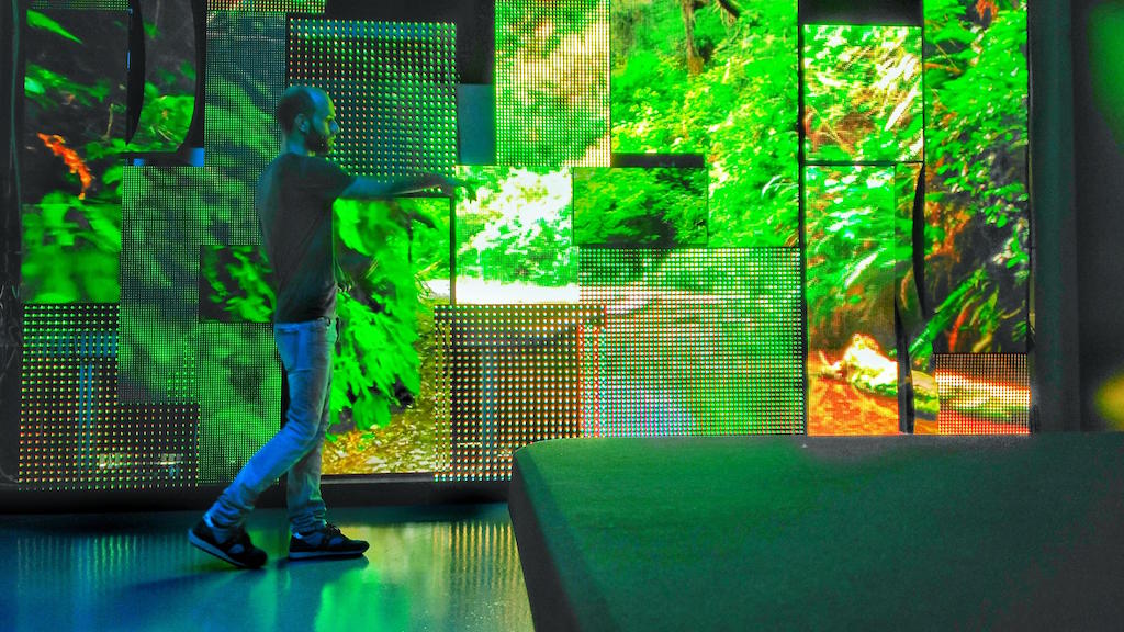 En este sentido, el nuevo espacio da la bienvenida a sus visitantes con una cascada formada por un jardín vertical y paneles led P4.81, que les invita a adentrarse en un espacio natural rodeado de tecnología inmersiva.