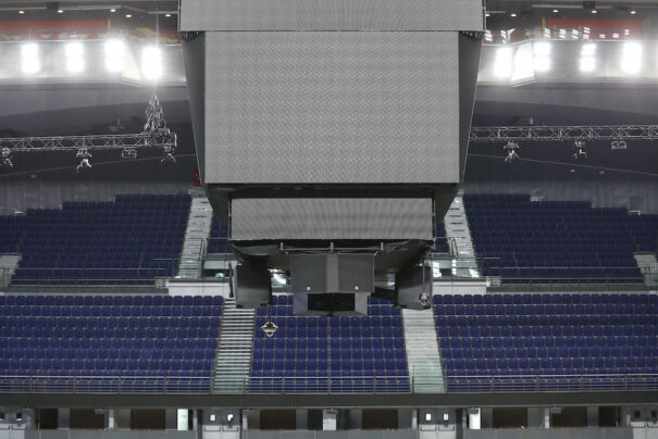 Una vez sustituidas las pantallas Led, la instalación de audio se ha completado con dieciocho unidades EVH 1152D de Electro-Voice en el videomarcador para dar cobertura a los tres niveles de gradas del WiZink Center.