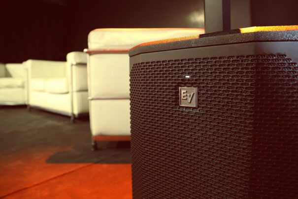Para solucionar este problema, se sonorizó el espacio con seis unidades Electro-Voice EVU 1062 blancas y un mezclador Dynacord CMS 1000.