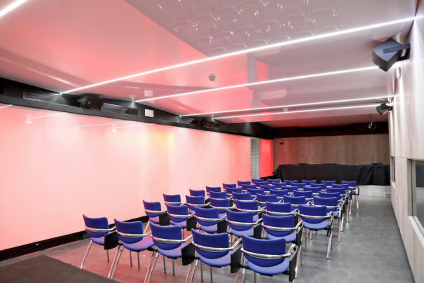 Esta galería, situada en un nivel superior de la Sala Truss, se compone de un espacio diáfano que permite una ampliación del aforo de la sala Truss si es necesario.