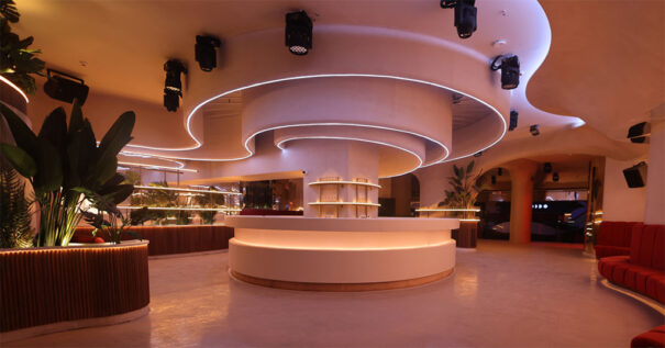 El club se estructura en dos plantas que ofrecen diferentes ambientes, incluyendo una sala VIP, todas diseñadas para albergar desde conciertos y eventos privados hasta sesiones de DJs. Las texturas naturales, formas orgánicas y toques de vegetación enriquecen su ambiente, creando un ecosistema único para los asistentes.