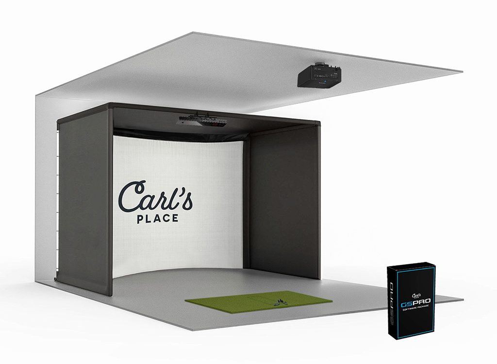 El paquete de golf curvo incluye el proyector láser 4K de corto alcance BenQ AK700ST, el kit de cabinet de golf curvo Carl’s Place y el monitor Uneekor EYE XO2. También incorpora un soporte para proyector y la alfombra de golpeo Carl’s HotShot de 6×10 pulgadas, así como una licencia de suscripción para el software de simulación de golf GSPro.