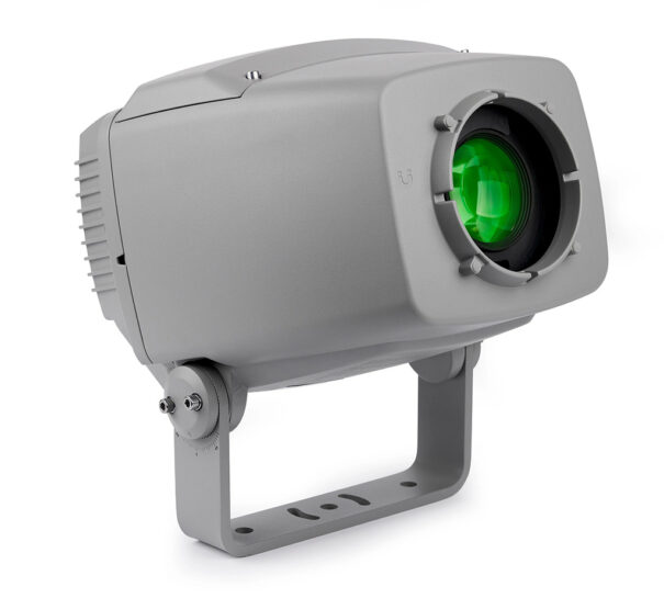 Sistema óptico de alta eficiencia: Este garantiza un mantenimiento completo de la intensidad lumínica en todo el rango de zoom. El módulo de encuadre opcional permite adaptar la imagen proyectada para que se adapte con precisión a la fachada.