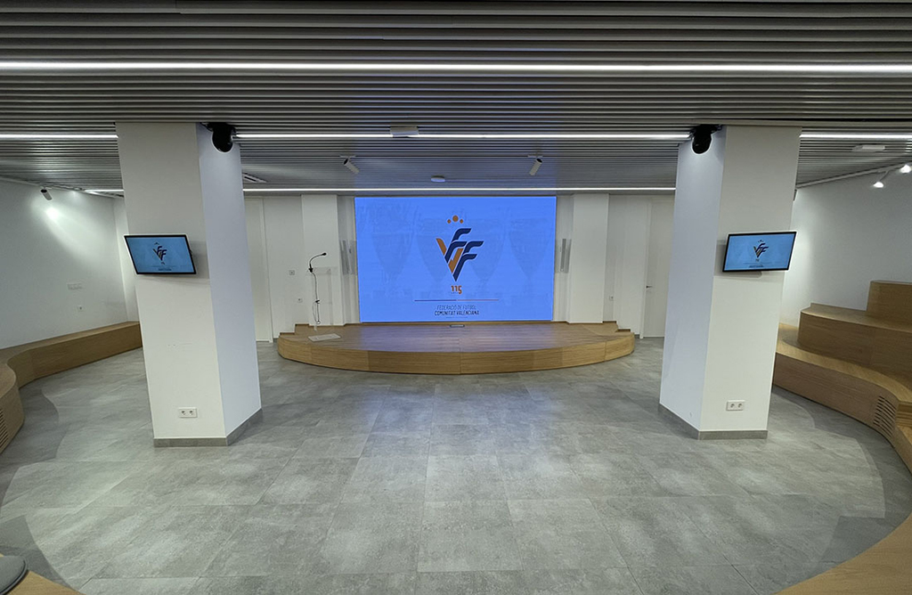 Durante la fase de planificación, la FFCV buscaba una solución polivalente que pudiera adaptarse a diferentes usos, como juntas directivas, transmisiones en directo y presentaciones.