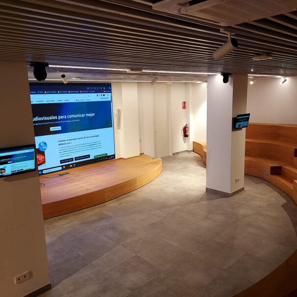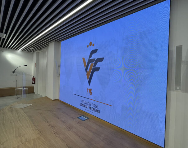 Como respuesta, Meinsat propuso incluir una pantalla Led Traulux Qfix II de 3,84×2,4 metros, un pitch de 2.5 y una frecuencia de refresco de 3840 hz, idónea para instalaciones fijas de interior. Este equipo dota al espacio para lo que se requiera, visualizar contenido, presentaciones o incluso como photocall, donde basta con añadir unos taburetes para contar con un fondo corporativo con los logotipos de la federación.