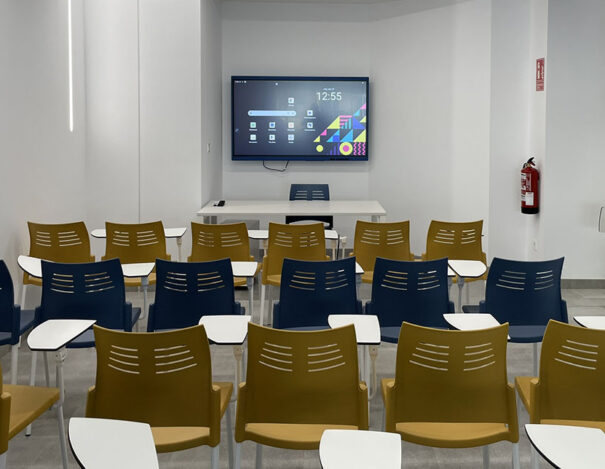 Además, se han dotado cuatro salas de reuniones, dos de ellas interactivas, y se han equipado con monitores Clevertouch Impact LUX, con Android Google EDLA integrado de 75 y 65 pulgadas, junto con cámaras USB Poly Studio con autotracking, para facilitar videoconferencias.