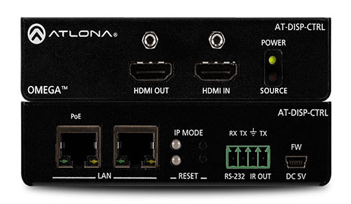 DISP-CTRL es compatible con HDCP 2.2 y admite vídeo 4K/UHD a 60 Hz con muestreo de croma 4:4:4, así como velocidades de datos HDMI de hasta 18 Gbps. También se puede utilizar junto con un conmutador HDMI, como el modelo 4×1 Atlona JunoX 451, para controlar un mayor número de fuentes AV.