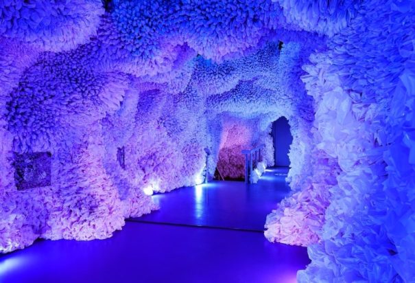 Los visitantes podrán adentrarse, por ejemplo, en una sala diseñada en forma de cueva, obra de Basia Goszczynska, creada con 44.000 bolsas de plástico (las misma cantidad que, según los datos facilitados, utiliza nada menos que cada minuto el Estado de Nueva York).