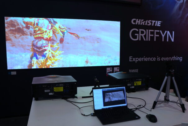 Christie está realizando el preestreno del proyector Griffyn 4K50-RGB de láser puro de 50.000 lúmenes, que llena de colorido la pantalla trasera del stand con un blending de gran formato; mientras que el proyector láser DWU960-iS 1DLP de la Serie Inspire está debutando en la feria con un display en blending realizado con el software de alineamiento basado en cámara Mystique Lite, que con un solo clic permite mantener la matriz alineada.