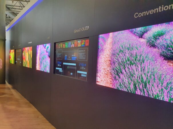 En otra zona del estand se muestra la aplicación Cine Led con tres cámaras para proporcionar una alta velocidad de refresco, especialmente indicada para estudios de realidad extendida (XR), con tecnología de Ghost Frame.