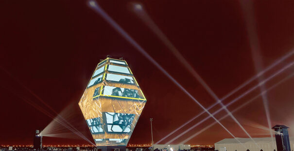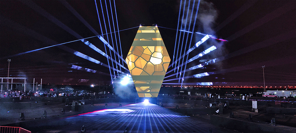 Para controlar el espectáculo multimedia de 360º del festival Khareef, que se creó para que pareciera un monolito en forma de diamante, se utilizaron los servidores multimedia AV Stumpfl Pixera one y Pixera two OCTO.