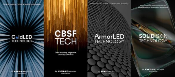 Además de estos lanzamientos de productos, INFiLED destacará cuatro tecnologías transformadoras creadas en colaboración con sus clientes de todos los sectores de la industria audiovisual y diseñadas para satisfacer sus diversas necesidades. Por un lado, la tecnología ColdLED ofrece una superficie de pantalla fría y táctil, lo que garantiza una experiencia de visualización cómoda. Proporciona un relieve de patrón térmico, estabiliza la longitud de onda de la luz y la eficiencia luminosa para un rendimiento constante y de alta calidad durante un uso prolongado. Al reducir la temperatura de la pantalla, protege los LED, lo que prolonga la vida útil tanto de los componentes como de la pantalla.