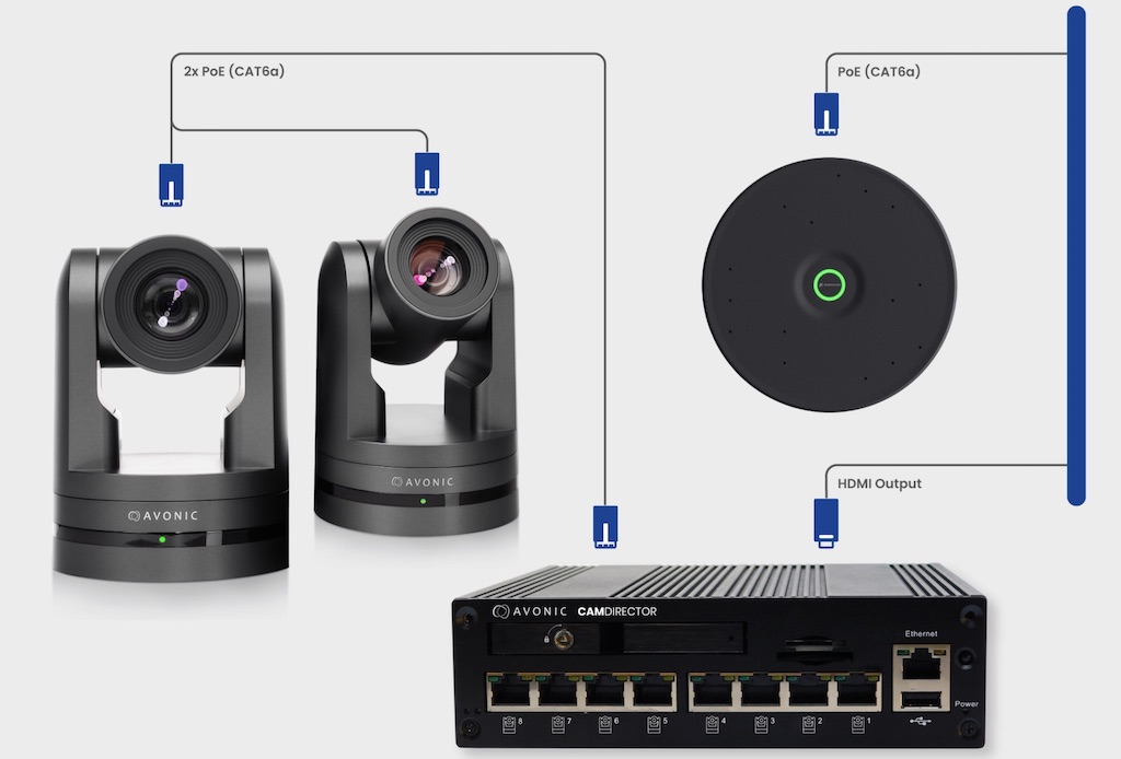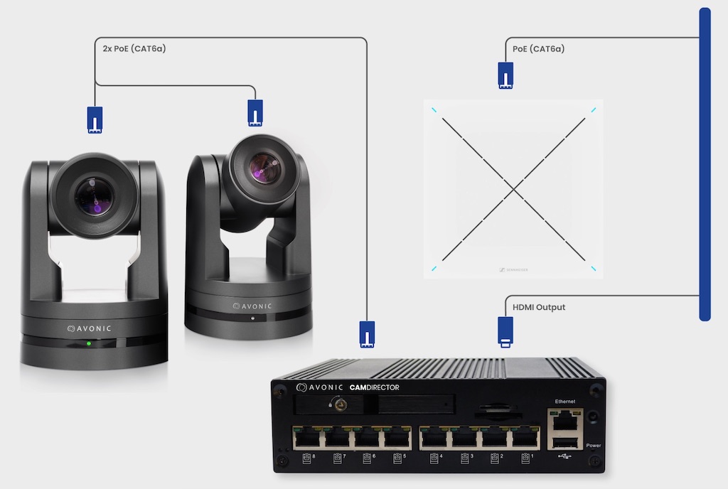 Con la entrada de audio de Sennheiser y el seguimiento basado en IA de Avonic CamDirector, el sistema garantiza una configuración de audio y vídeo completamente automatizada, idónea para entornos donde el control sin intervención es esencial, lo que permite a los equipos concentrarse en el contenido sin distracciones técnicas.