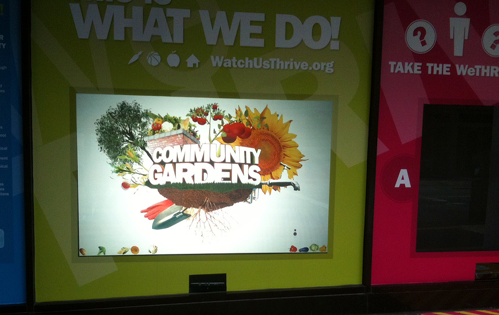LeapFrog Interactive, una agencia de publicidad digital estadounidense, ha presentado su primera instalación de marketing interactivo de Digital Out-Of-Home (数字户外媒体), creada para la campaña de salud pública WeTHRIVE del condado de Hamilton (俄亥俄州) y ubicada en pleno centro de la ciudad de Cincinnati. El objetivo del proyecto era crear una llamativa pantalla en la que los ciudadanos puedan interactuar y aprender al mismo tiempo sobre las conductas de alimentación saludable.