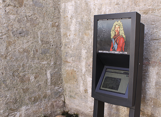 El Ayuntamiento de Pamplona ha puesto en funcionamiento tres postes interactivos para ilustrar al paseante, de manera informativa y lúdica, sobre los hitos más importantes del recorrido por las fortificaciones de la ciudad. El poste o ‘kiosco’ mide aproximadamente dos metros, está realizado en acero antivandalismo con vidrio de seguridad y el acabado es pintado en gris oscuro. Ha sido diseñado para ser accesible, tanto de pie, como en silla de ruedas. Como el resto de los elementos de señalización de las fortificaciones de la ciudad dispone de información en castellano, euskera, 英语和法语. Su función: divulgar el valor patrimonial del elemento fortificado.