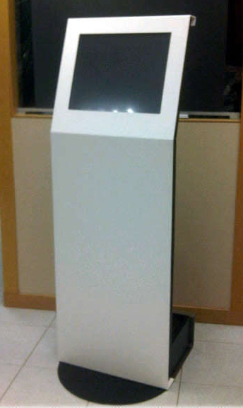 展示玻璃 ha añadido a su catálogo de productos un nuevo punto de información multimedia con pantalla táctil interactiva. Este punto de información interactivo se diferencia del resto por la posibilidad de hacer un modelo concreto para cada cliente. Eso es posible gracias al sistema de vinilado completo del punto de información en color blanco liso, con lo que el cliente puede realizar el diseño completamente a su gusto, haciendo que su quiosco multimedia tenga una presencia completamente corporativa y personalizada.