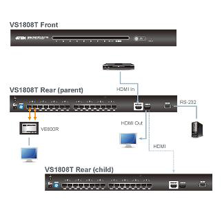 Aprovechando la especificación HDMI, que ofrece colores profundos y soporte para el contenido 3D, el VS1804T/VS1808T de montaje en rack es capaz de transferir resoluciones de vídeo de hasta 1920×1200 (WUXGA). Con tecnología EDID (Extended Display Identification Data) incorporada directamente en el VS1804T/VS1808T, a los usuarios se les presenta una gama de opciones para configurar su display de video para una calidad óptima. 除了, el VS1804T/1808T ofrece una interfaz RS-232 bidireccional que permite el control del sistema a través de un controlador de alto nivel.