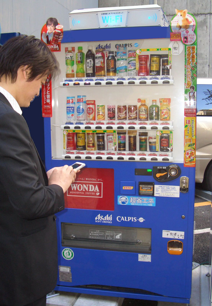En un país donde todo, desde la ropa interior femenina hasta las langostas están disponibles en una máquina expendedora, no es ninguna sorpresa saber que el WiFi es el último servicio que llegará a las estanterías de las máquinas expendedoras de autoservicio de Japón. El fabricante de refrescos Asahi Soft Drinks va a lanzar la primera máquina expendedora de bebidas equipada con WiFi de alta velocidad gratuito.