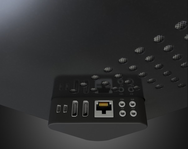 La conectividad a través de WiFi 802.11n, Bluetooth y Gigabit Ethernet proporciona una perfecta comunicación bidireccional con otros proyectores BryteWerks, así como una amplia variedad de periféricos, 包括, pero sin limitarse a ellos, dispositivos de juegos, displays de pantalla plana, discos duros externos, 电脑, dispositivos inteligentes de mano y video digital y equipos de procesamiento de señales y enrutamiento. El único interfaz I/O, que también cuenta con dos puertos USB y HDMI, salidas de sonido surround analógicas individuales 5.1 y alimentación AC, es un sistema de gestión de cable totalmente actualizable, 正在申请专利, que oculta todas las interfaces de cable en el pie Mag-Snap del proyector.