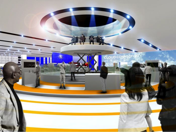 福特为北美国际车展参观者带来惊喜 (北美航空航天局) de Detroit con una serie de pantallas interactivas que pretenden crear una experiencia inmersiva que refuerce la imagen de las marcas de este fabricante de automóviles.