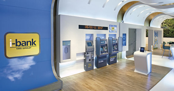 La tienda i-bank del Banco Nacional de Grecia (NBG) – un establecimiento de diseño ubicado en Atenas basado en servicios electrónicos (互联网 / teléfono / Banca Móvil, 自动提款机)- ha utilizado las últimas tecnologías digitales y métodos de comunicación, en combinación con un diseño moderno y elementos educativos, para introducir una experiencia bancaria completamente diferente. El objetivo estratégico era llevar el “i-bank” (互联网) a la experiencia del ladrillo y el mortero, dando un paso audaz más allá de la puesta en marcha de la marca “i-bank” 创造, 本质上, un comunicador de la marca en vivo y para desafiar los actuales convencionalismos.