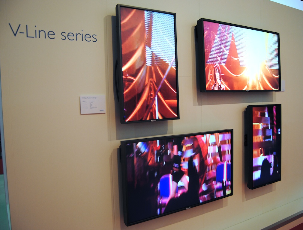 En la feria Integrated Systems Europe, Philips está exhibiendo una amplia gama de displays de señalización pública, entre los que se incluyen varios modelos de pantallas autoestereoscópicas, la nueva serie E-Line con ranura Open Pluggable Specification (OPS), su video wall 3D LED de bisel ultra-delgado de 55” y un display LED Candeo de 120”.