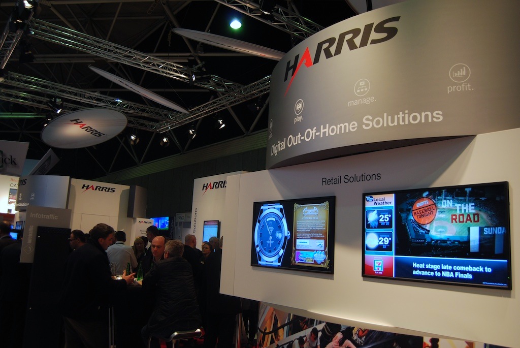 ISE 2012, Harris está demostrando su completa solución DOOH – incluyendo el sistema de señalización digital de Harris InfoCaster y el software de gestión empresarial Punctuate para los principales mercados verticales DOOH.