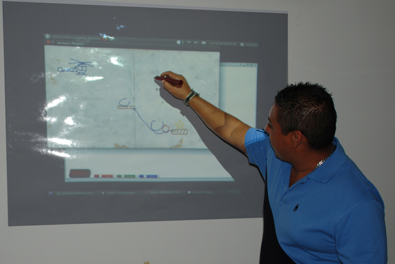 这 Fundación Centro Nacional de Innovación Tecnológica (Cenit), entidad adscrita al Ministerio del Poder Popular para Ciencia y Tecnología de Venezuela, a través del equipo de trabajo de la Dirección de Investigación Desarrollo e Innovación, ha realizado las primeras pruebas de funcionamiento del prototipo de “Pizarra interactiva basada en tecnología infrarroja”. El prototipo consiste en la interacción de un usuario con una pizarra digital, a través de un dispositivo con puntero, tipo lápiz, que envía señales inalámbricas a un computador para interactuar con los sistemas operativos y aplicaciones desarrollados con tecnologías libres, como si se tratara de una pizarra convencional.