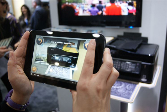 例如, algunas aplicaciones incluyen una herramienta de navegación e información en el entorno de trabajo, una guía fácil sobre cómo utilizar equipos como una impresora o cómo realizar otras tareas en el caso del puesto de un jardinero o un repositor de supermercado.