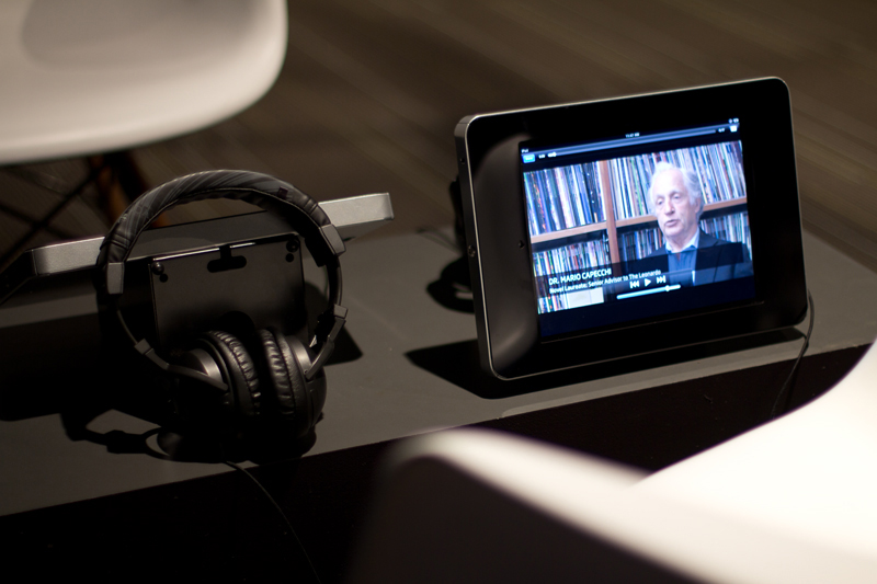 The Leonardo también utiliza el iPad como portal de información y estaciones de audio con la montura Figure 8 VESA de ArmorActive 8 en diversos lugares dentro del propio museo.