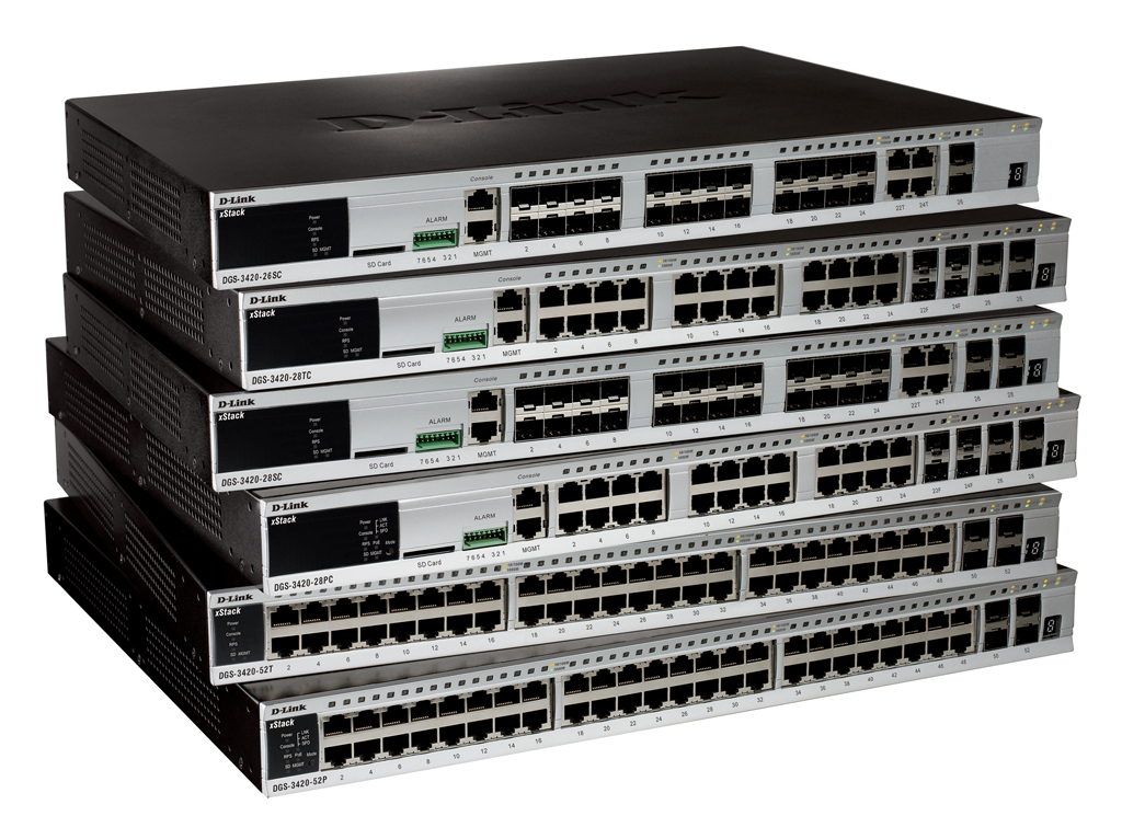 D-Link ha ampliado su catálogo de switches con la incorporación de la serie DGS-3420, formada por equipos Gigabit apilables y con 4 slots SPF+10Gbps, lo que los convierte en una solución indicada para empresas que necesiten de un alto rendimiento y la máxima flexibilidad de configuración.