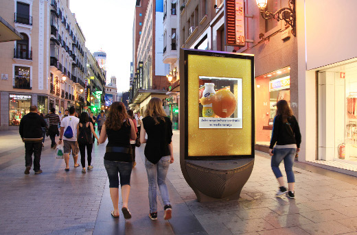 JCDecaux Innovate ha desarrollado una serie de mupis escaparate en Madrid y Barcelona para presentar el nuevo producto “Actimel con zumo de naranja” de Danone.